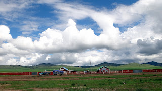 I am settled into a tough routine now. I ride about 8 hours a day, and set camp 200 meters away from the dirt tracks. Today, I faced a maze of dirt tracks while traced similar dust-dirt fields of grass that were selected for agriculture. I packed camp outside a Ger tent this morning, the grey haired herder and his young daughter helped me pack my bags and fill water from their blue barrels, extremely kind older man taking care of his young family on the Steppe. Thanking my generous hosts for their salted goat tea. There is usually an exchange in this custom - I give them some of my provision, Tuna and a bag of fresh toffee chocolates, he won't accept money. I leave a great place in search of dirt tracks back across the inhospitable Steppe. This harsh contrast really awakens you after traveling for hours with nothing in the horizons except white dots too far to make a difference (those are Ger tents along the mountains, miles from the National highways - also dirt tracks).